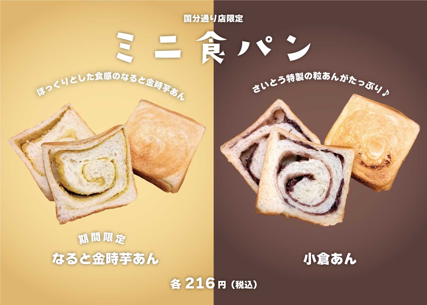 盛岡国分通り店「パン工房ここあ」から、秋のおすすめパンをご紹介します🍂 まずは、食べやすいサイズのミニ食パンに、ほくほくとした食感の“なると金時芋あん”を練り込んだ一品🍠お芋のほどよい甘みが秋らしさを感じさせてくれます。 もう一品は、さいとう特製の粒あんを・・・もっと見る