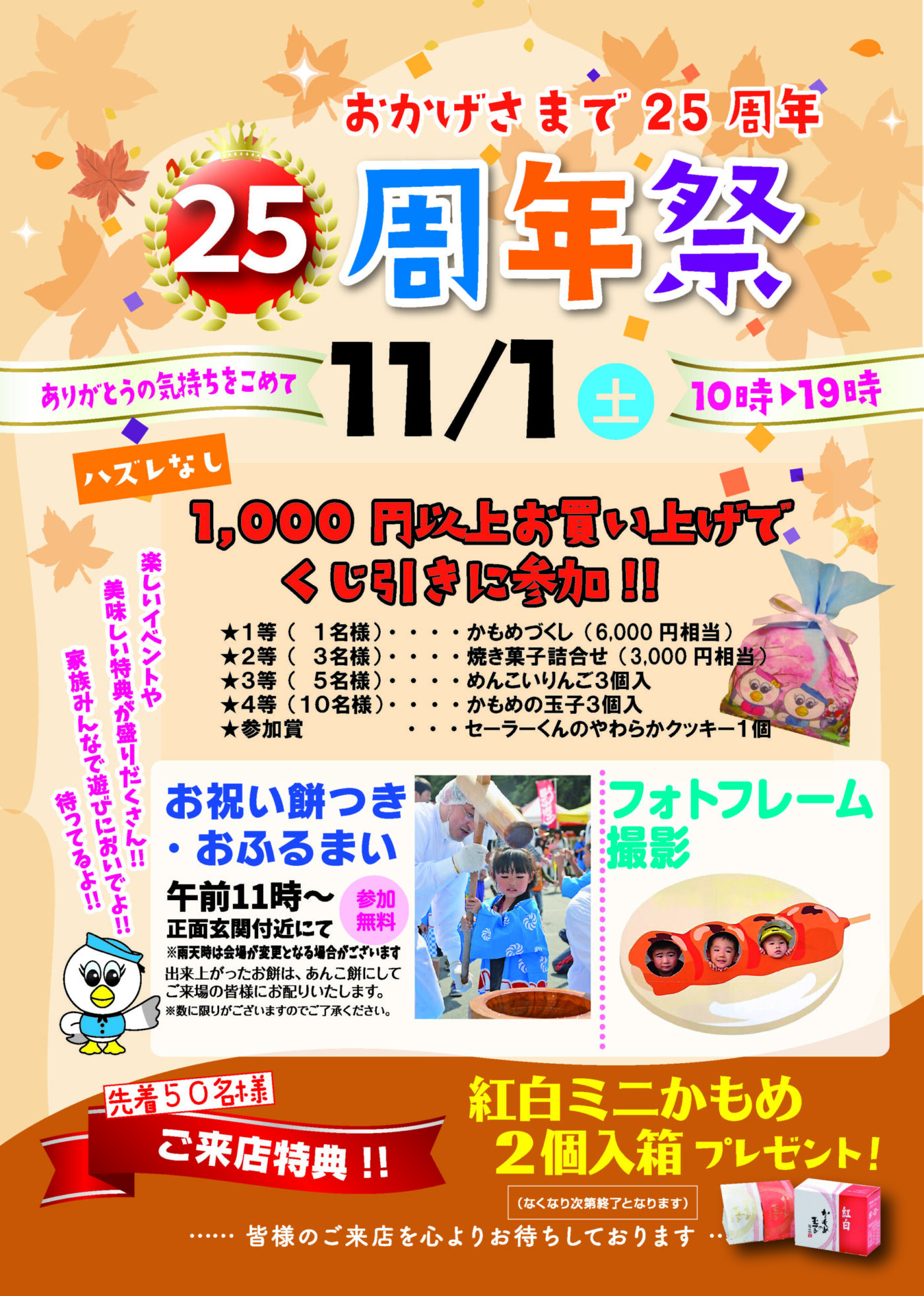 🎉おかげさまで三陸菓匠さいとう北上本店は、今年で25周年を迎えます🎉これまで支えてくださった皆様への感謝の気持ちを込めて、「25周年祭」 を開催いたします!