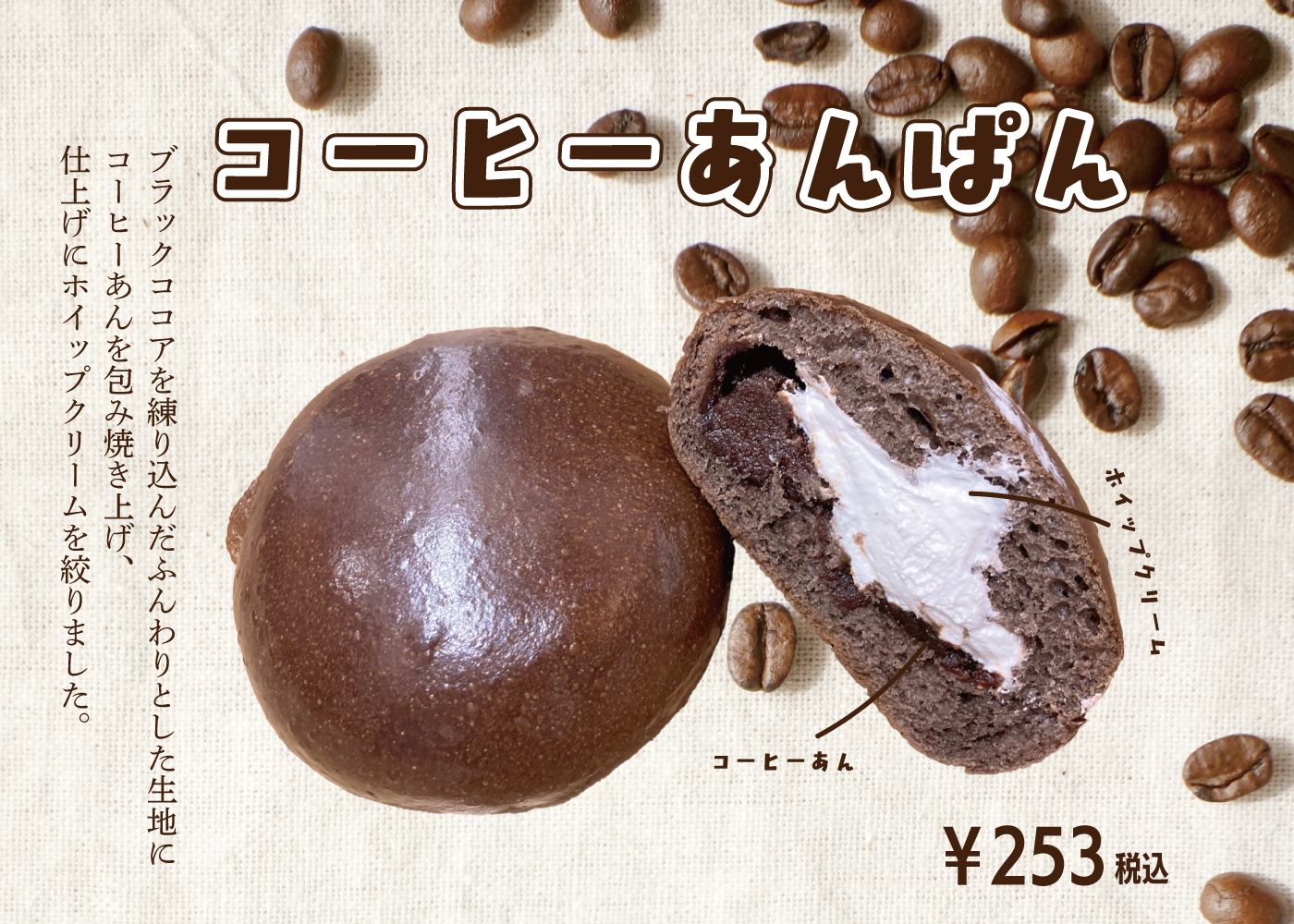 🔸『コーヒーあんぱん☆ホイップ入り』253円(税込)