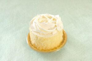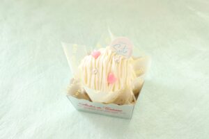 ふんわりスポンジとホイップの上に、ホワイトチョコムースをたっぷり絞ったホワイトデー限定ケーキ。