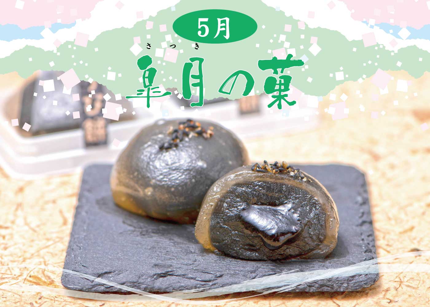 5月の【皐月の菓】は、初夏の訪れを感じさせる、風味豊かな和菓子をご用意いたしました🌿